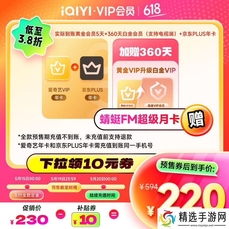 京东爱奇艺白金会员 + 京东 PLUS 年卡支持电视端券后 220 元领 10 元券京东 618 无门槛红包至高 25618 元:点此抽今日红包