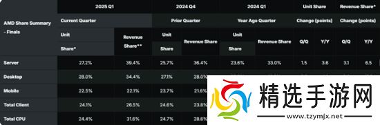 近期,AMD在服务器与桌面处理器市场的强劲表现引起了广泛关注。根据最新行业数据揭示,2025年第一季度,AMD在服务器市场的收入份额已攀升至39.4%,几乎占据了四成的市场份额。