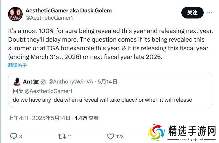 Dusk Golem在X平台上进一步表示,他对《生化危机9》在今年内公布充满信心,并预测其将在明年正式发售。尽管他对于游戏是否会再次延期持保留态度,但他也提出了几个可能的公布时间点,包括今年夏季或如TGA这样的重要活动。至于具体的发布日期,他推测游戏可能会在本财年(截至2026年3月31日)内问世,但也有可能推迟到2026年下半年。