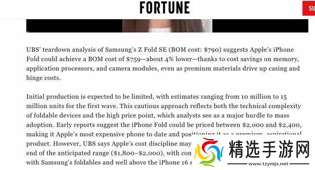 全球金融巨头瑞银(UBS)近日发布的一份深度拆解报告,揭示了苹果即将推出的首款折叠屏手机iPhone Fold的物料成本细节。据报告显示,iPhone Fold的物料成本(BoM)预计为759美元,相比三星Galaxy Z Fold SE的790美元成本,节省了约4个百分点。尽管苹果在构造材料上选择了成本更高的方案,如航空级钛合金中框与液态金属铰链,这些部件的单件成本较三星的铝合金加钢制铰链高出15%至20%,但苹果通过采用一体化精密加工工艺,成功地将组装成本降低了8%。