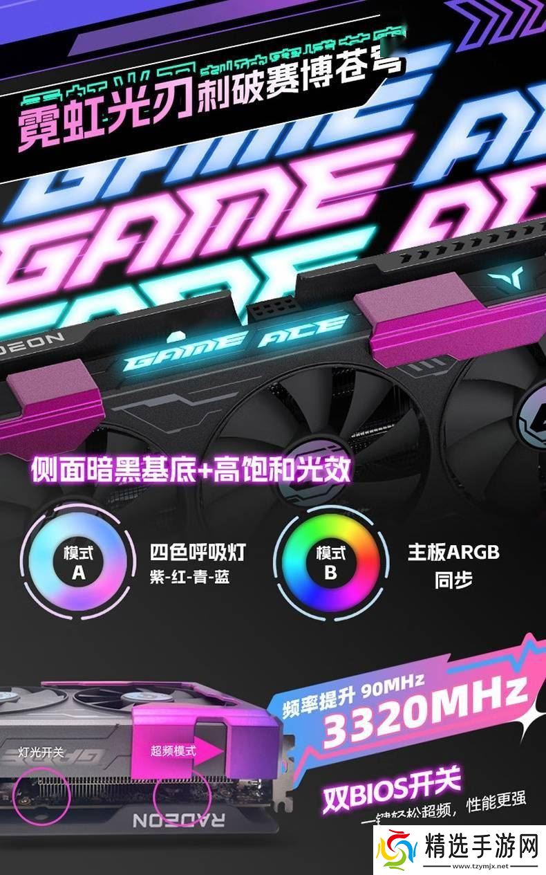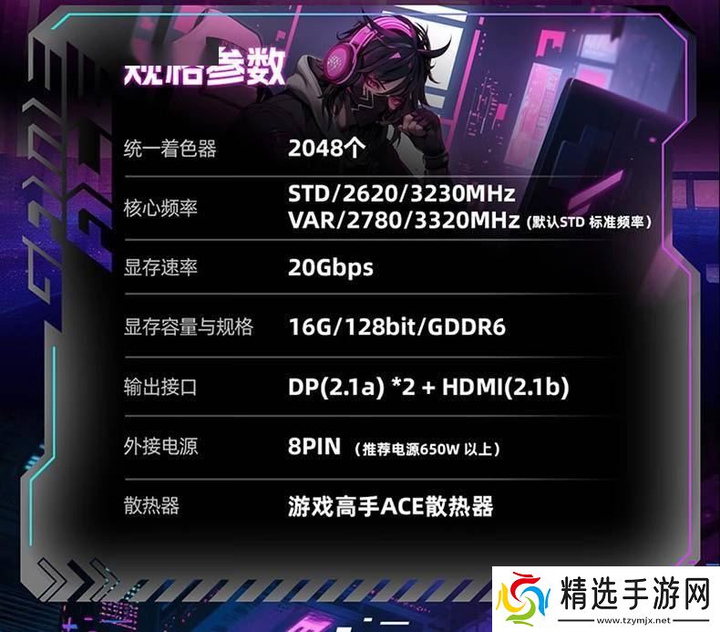 在散热方面,RX 9060 XT 16GB 游戏高手 ACE OC 配备了强大的散热系统,包括3颗87mm的双滚珠轴承风扇和3根6mm的热管。这一设计确保了显卡在高负荷运行时的稳定性,同时也提升了用户的游戏体验。在性能方面,显卡的STD下提升频率和游戏频率分别为3230MHz和2620MHz,而在VAR模式下,频率可以进一步超频至3230MHz和2780MHz。