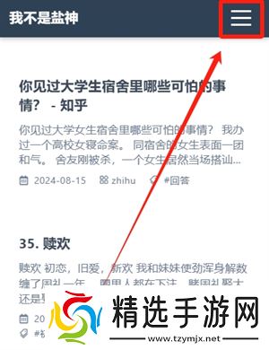 我不是盐神怎么搜索文章1、打开手机上下载好的我不是盐神app,或者打开网页版,在首页点击右上角的【三】三条杠按钮;