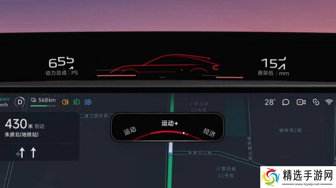 小米YU7的“天际屏”是其主打特色之一,它采用了三块Mini LED屏幕,支持1.1米的超宽全景显示和108PPD的超视网膜级高清显示。通过曲面投影技术,这些屏幕的光线可以反射到前风挡下的黑区,形成一个连贯的全景显示界面。