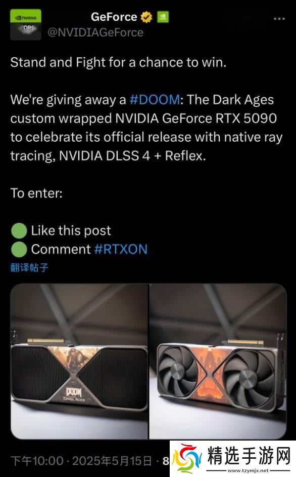 为了庆祝这一重要时刻,英伟达决定在各大社交平台上举办一场特别的抽奖活动。奖品是一张独一无二的GeForce RTX 5090显卡,这张显卡采用了《毁灭战士:黑暗时代》的主题涂装,极具收藏价值。