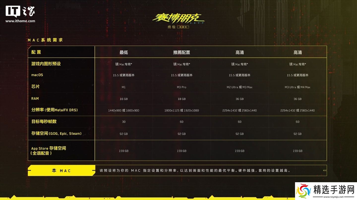 《〈赛博朋克 2077〉游戏苹果 Mac 版配置要求公布:最低 M1 芯片 + 16GB 内存,推荐 M3 Pro + 18GB》