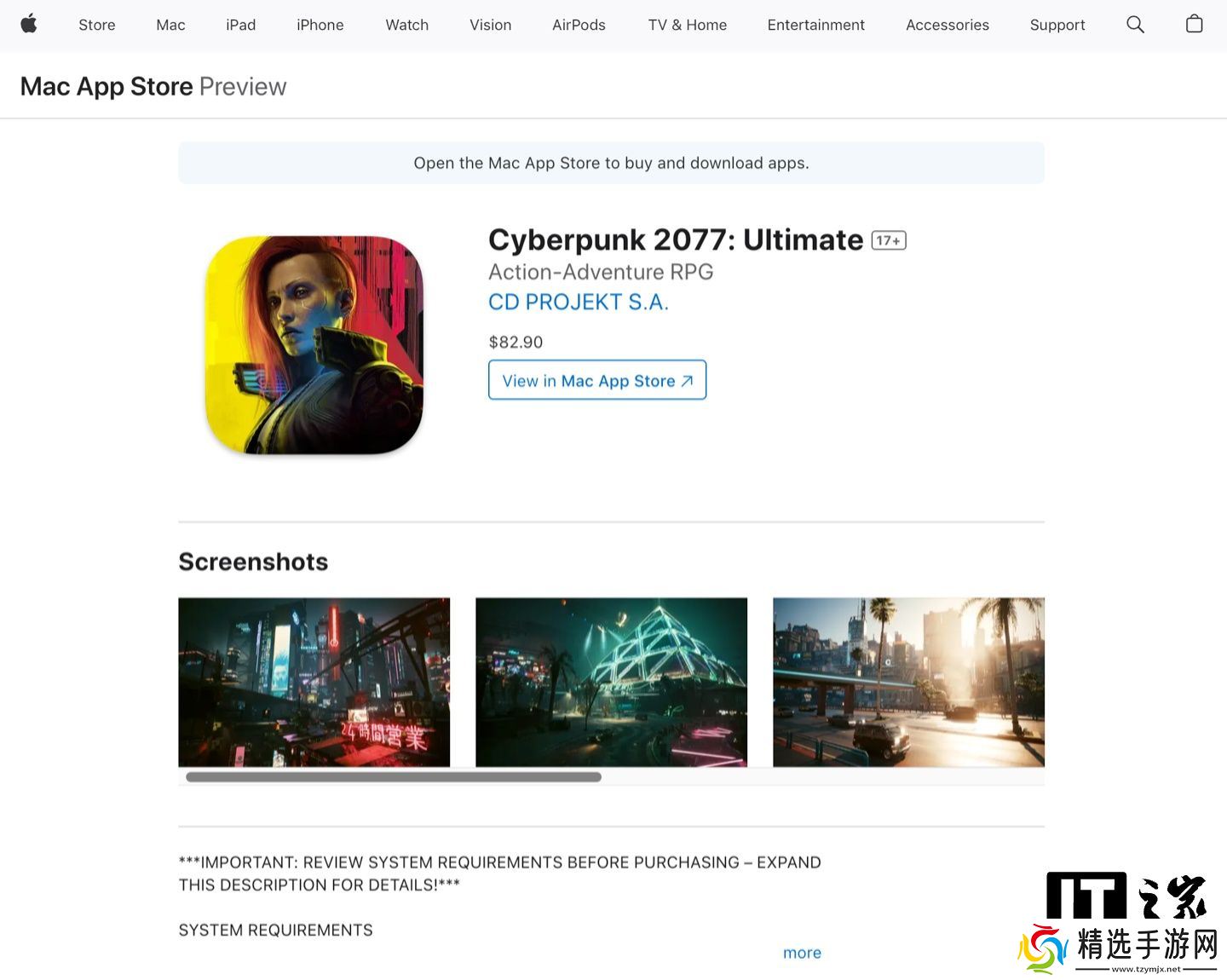 《赛博朋克 2077:终极版》登陆苹果 Mac 平台,App Store 售 82.9 美元