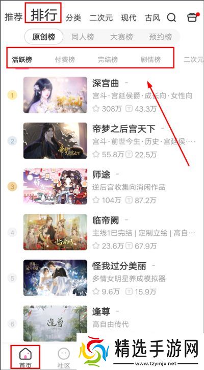 点击位于首页左上方,汇集所有优秀作品的排行榜,最新、最全、最热应有尽有