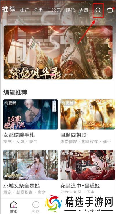 点击首页右上方搜索,查找喜欢的作品风格、题材或工作室