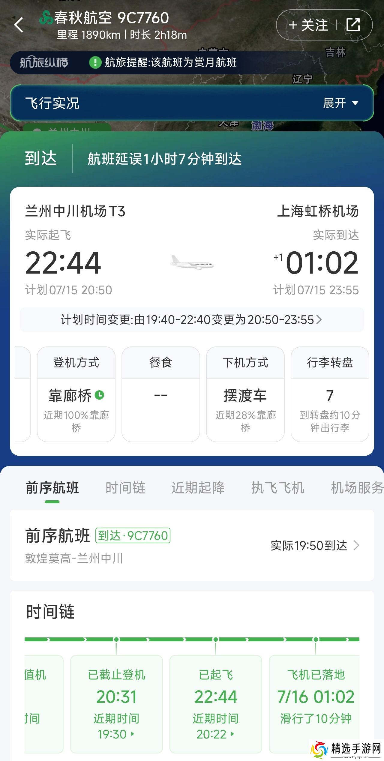 本站查询航旅纵横,该航班最终延误 1 小时 7 分钟到达。