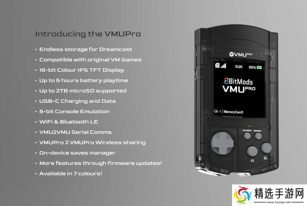 为了提升玩家的游戏体验,VMU Pro还配备了背光IPS彩色屏幕,并支持1.5倍缩放功能,确保游戏画面更加清晰细腻。同时,它还内置了Bluetooth LE蓝牙功能,提供了比内置单声道扬声器更加优质的音效,让玩家在享受游戏的同时,也能感受到更加震撼的听觉体验。