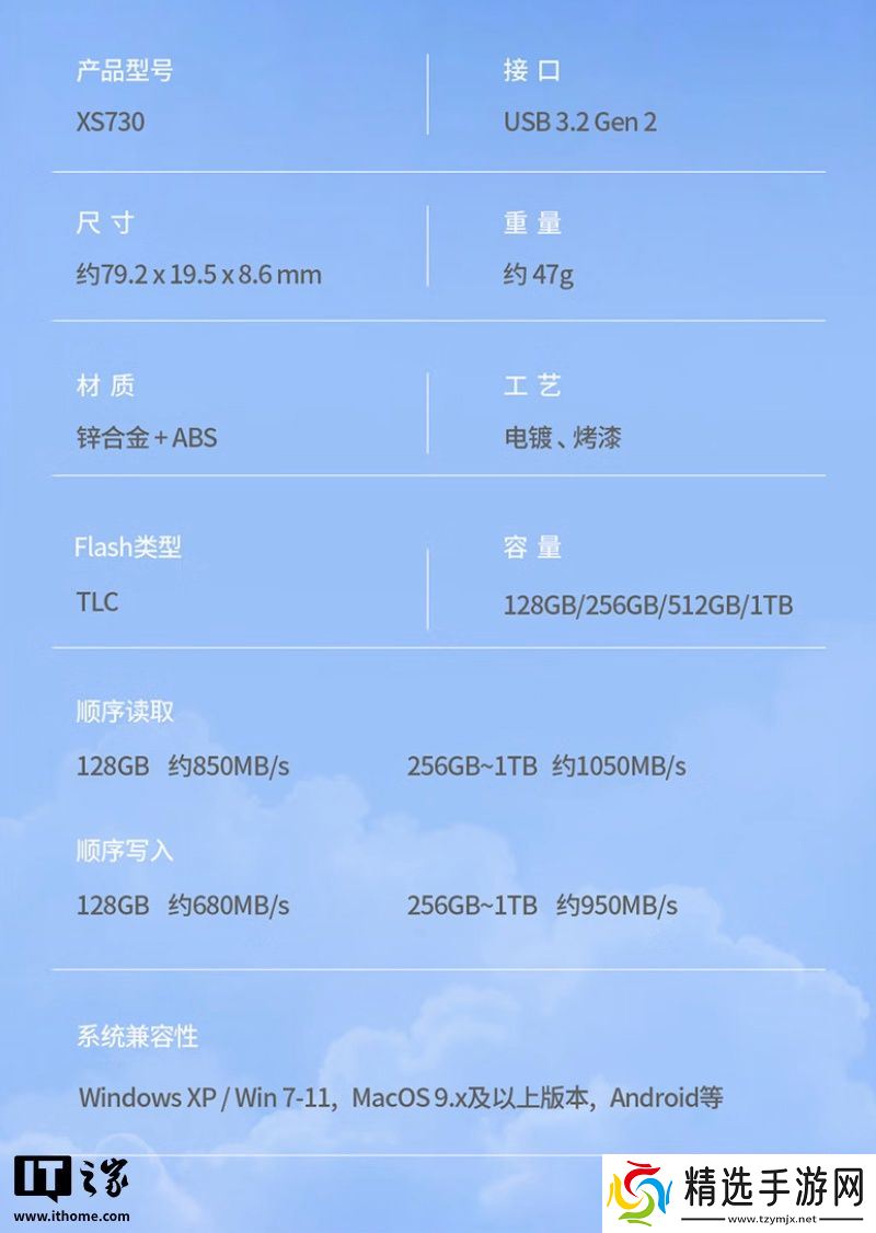 128GB 版本:顺序读取速度 850MB/s、顺序写入速度 680MB/s