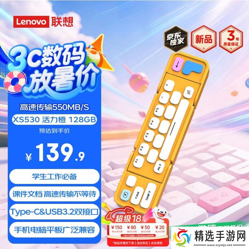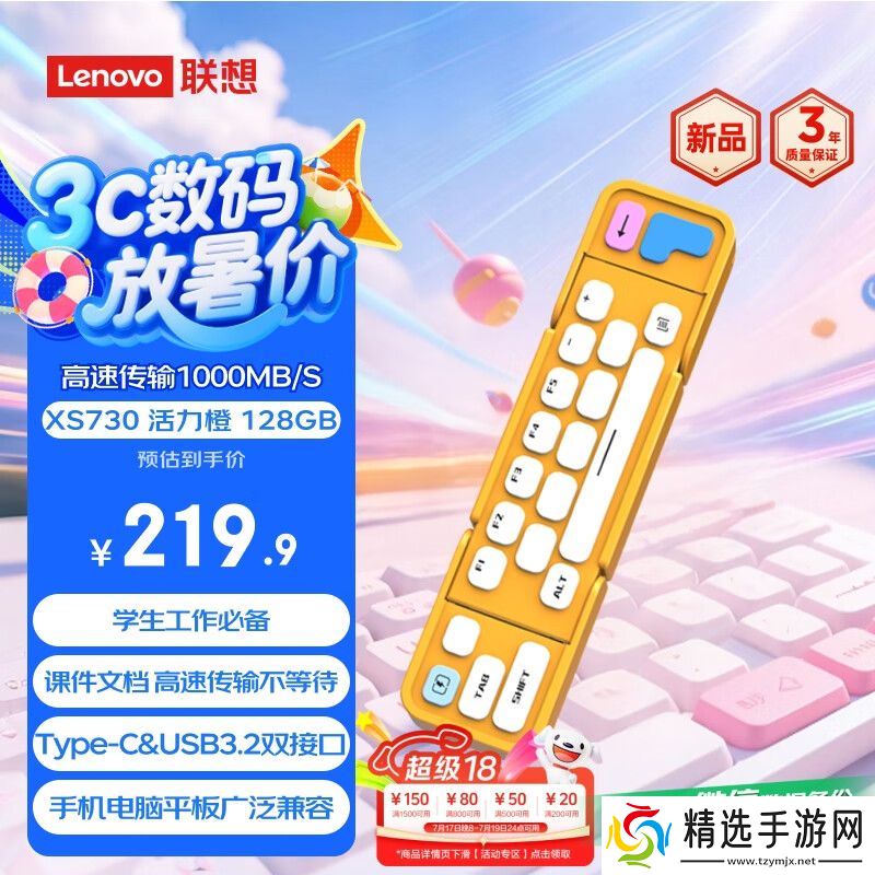 本站 7 月 19 日消息,联想现在已在京东上架一款键盘造型的小新 U 盘,可选多种配色,提供 128GB-1TB 容量,可选两种传输速度,本站整理价格如下: