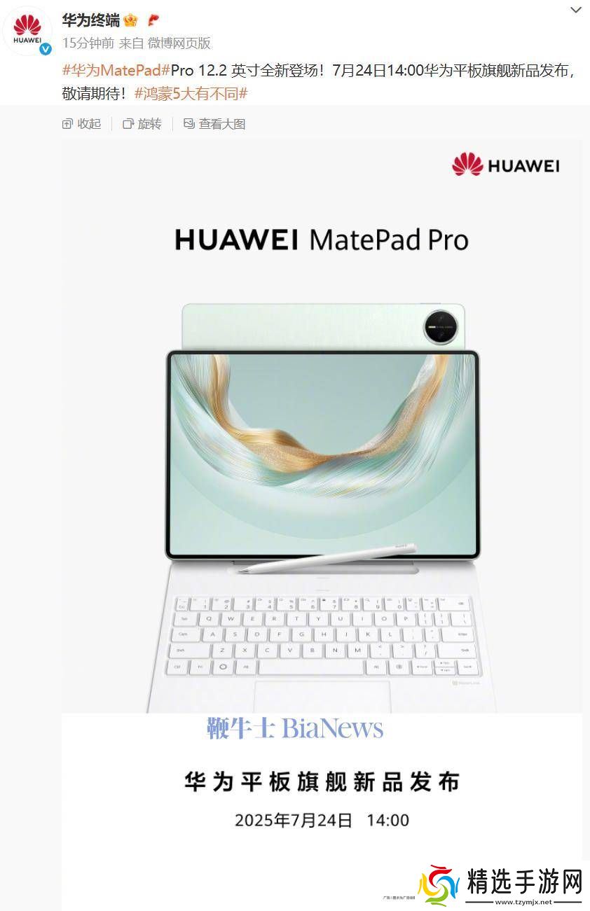 华为终端官方近日宣布,其最新的平板旗舰产品——华为MatePad Pro 12.2英寸,将于7月24日下午2点正式发布。这款备受期待的产品已在华为官网开放预约,吸引了大批科技爱好者的关注。