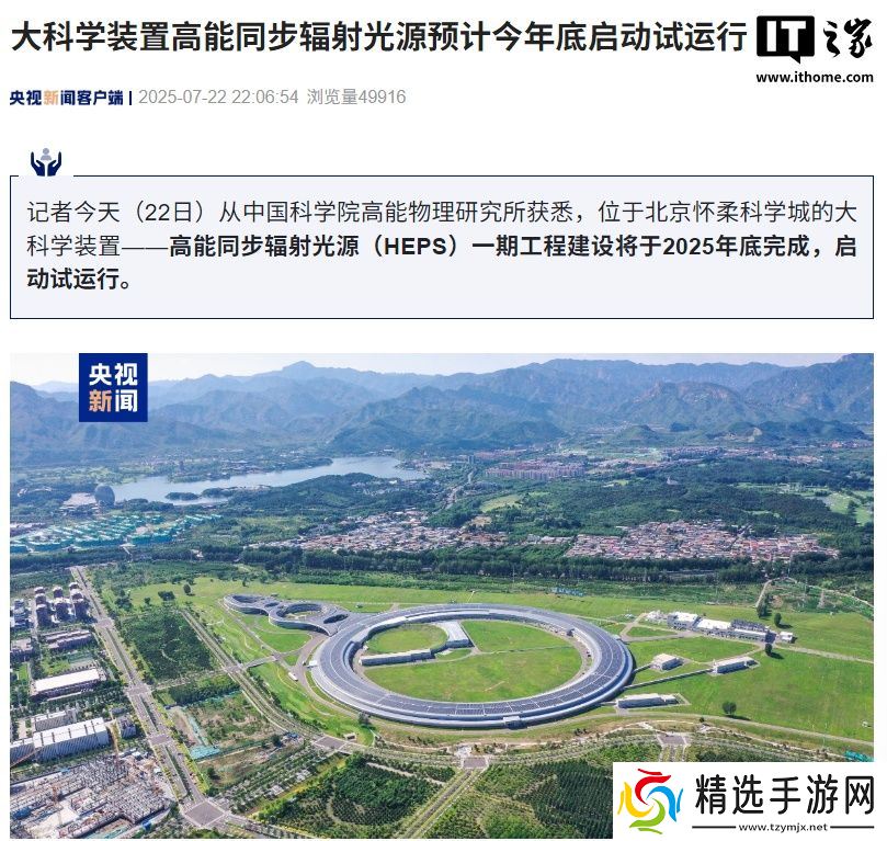 本站 7 月 22 日消息,据央视新闻今日援引中国科学院高能物理研究所消息,位于北京怀柔科学城的大科学装置 —— 高能同步辐射光源(HEPS)一期工程建设将于 2025 年底完成,启动试运行。