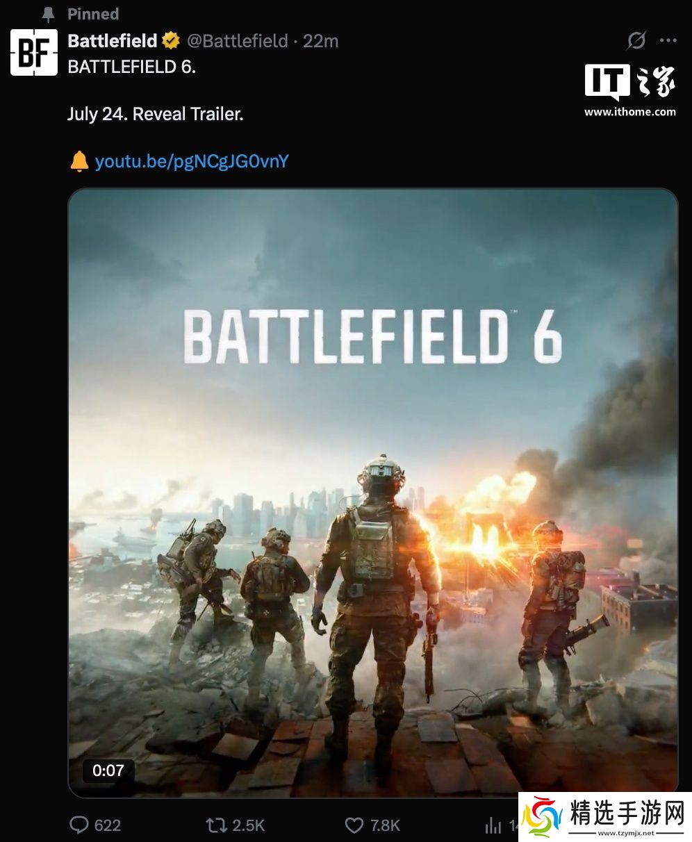本站 7 月 22 日消息,EA 现已官宣《战地风云 6》新作,并宣布本作将于北京时间 7 月 24 日 23:00 公布首支预告片。参考官方海报,可以看出地图背景为纽约。