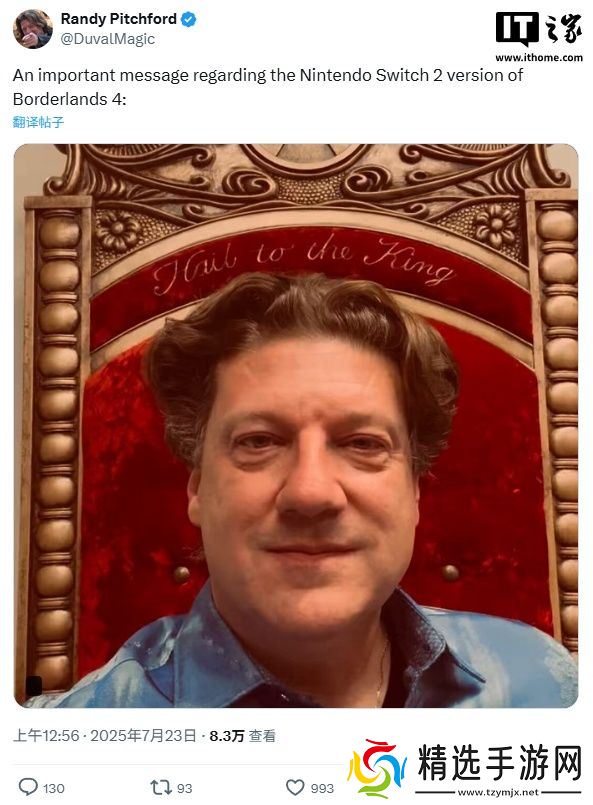 听着,我知道我们承诺过游戏会在 2025 年内推出," 皮奇福德开场说道。" 我们承诺过它会在年底前发售,而且…… 游戏开发非常困难。但我现在有个更新消息:我们终于确定日期了。任天堂 Switch 2 版的《无主之地 4》发售日确定了。各位,那个日期是 ——10 月 3 日!就是 10 月 3 日!不是明年!甚至不是圣诞假期!离圣诞节还差得远!离感恩节也很远!就是 10 月 3 日,各位!呜呜!(喇叭声)我太兴奋了!太兴奋了!快准备入手吧!