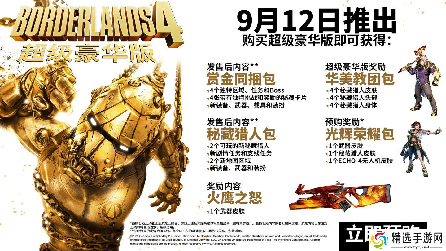 本站 7 月 23 日消息,《无主之地 4》定于 9 月 12 日发售,首发登陆 PC(Steam / Epic)、PS5、Xbox Series X|S 平台。