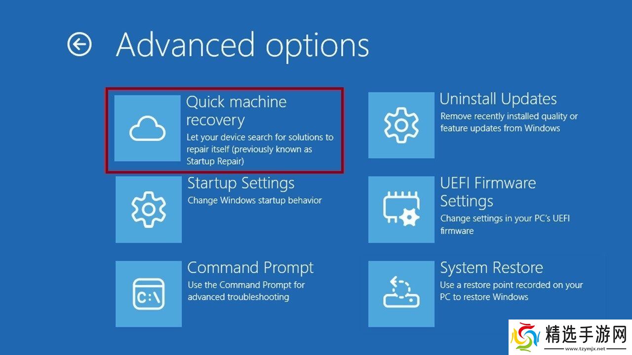 [新增功能] 上线 Quick machine recovery 功能,该功能启用后,将自动检测并修复 Windows 11 设备上的常规问题,减少了停机时间并避免了手动修复的需要。如果设备遇到常规启动问题,会进入 Windows 恢复环境(WinRE),连接到互联网,并通过 Windows Update 提供针对性的修复。