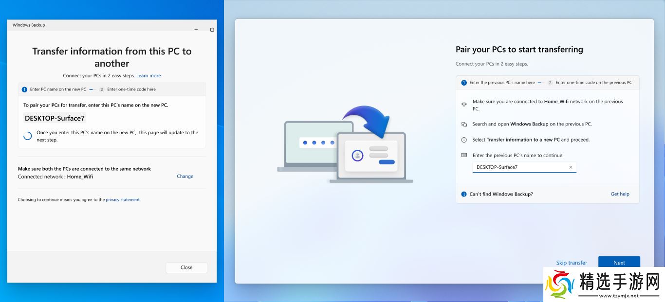 根据微软官方介绍,新迁移工具可在家庭网络内传输文件、个人设置(本站注:主要包括文档、照片和桌面布局)和首选项,但应用程序和密码不会同步。
