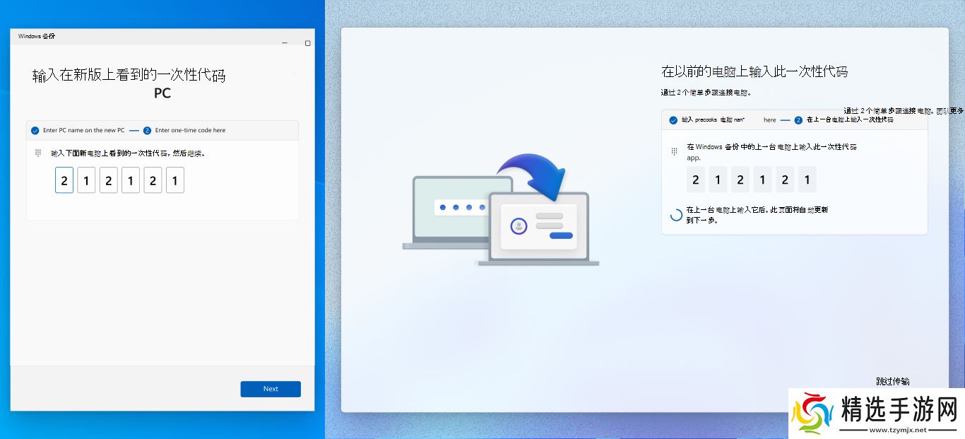 在新电脑上,你将看到一个一次性代码,必须在以前的电脑上的 Windows 备份应用中输入该代码。