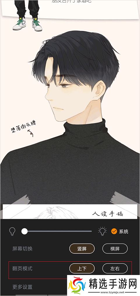2、同样是在漫画界面点击界面会显示设置,在设置中可以切换翻页方式,选择你习惯的方式即可。