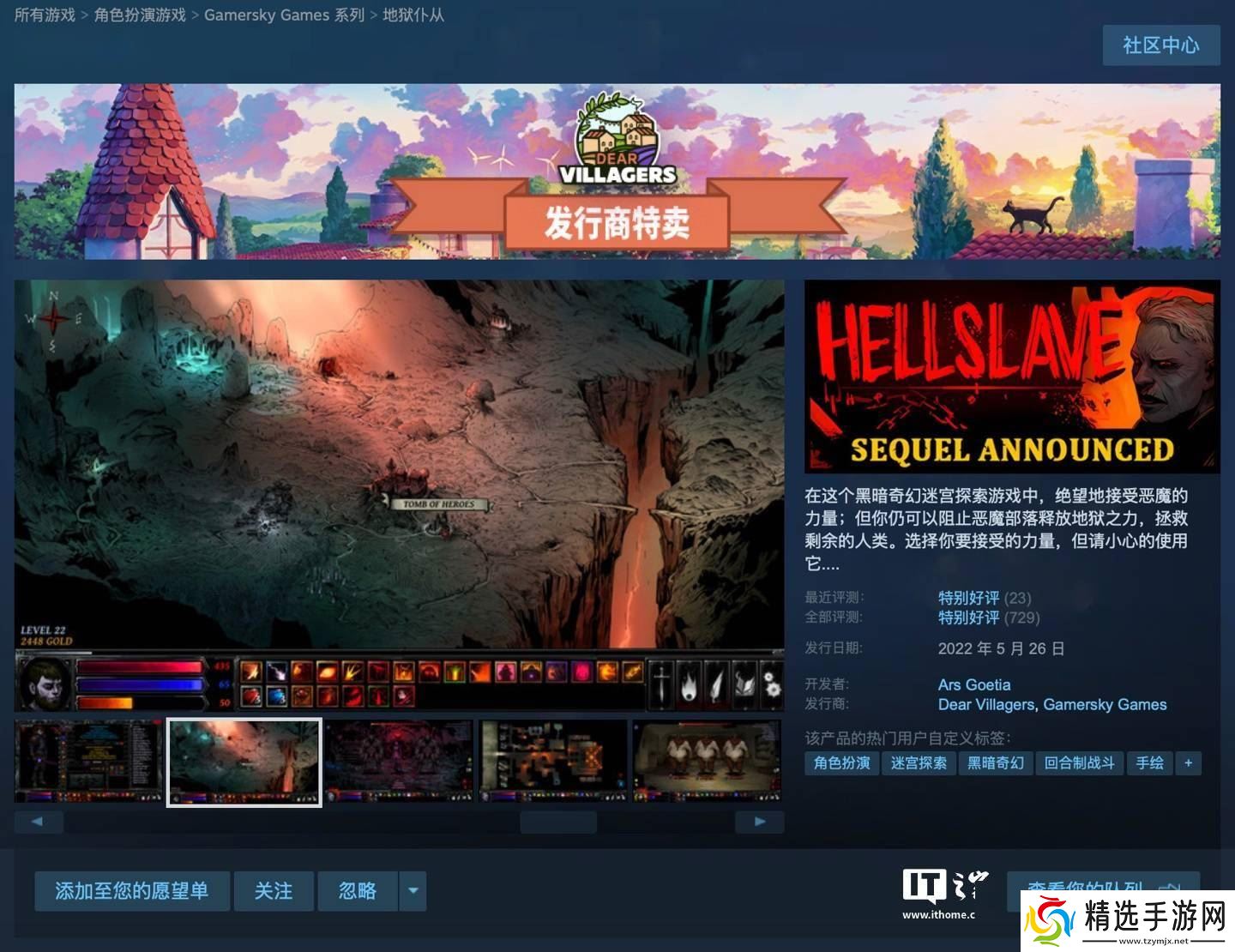 游戏开发商Ars Goetia近日宣布,其制作的黑暗奇幻迷宫探索游戏《地狱仆从》已在Steam平台启动“喜加一”活动。这款游戏原价68元人民币,目前玩家可以免费领取。