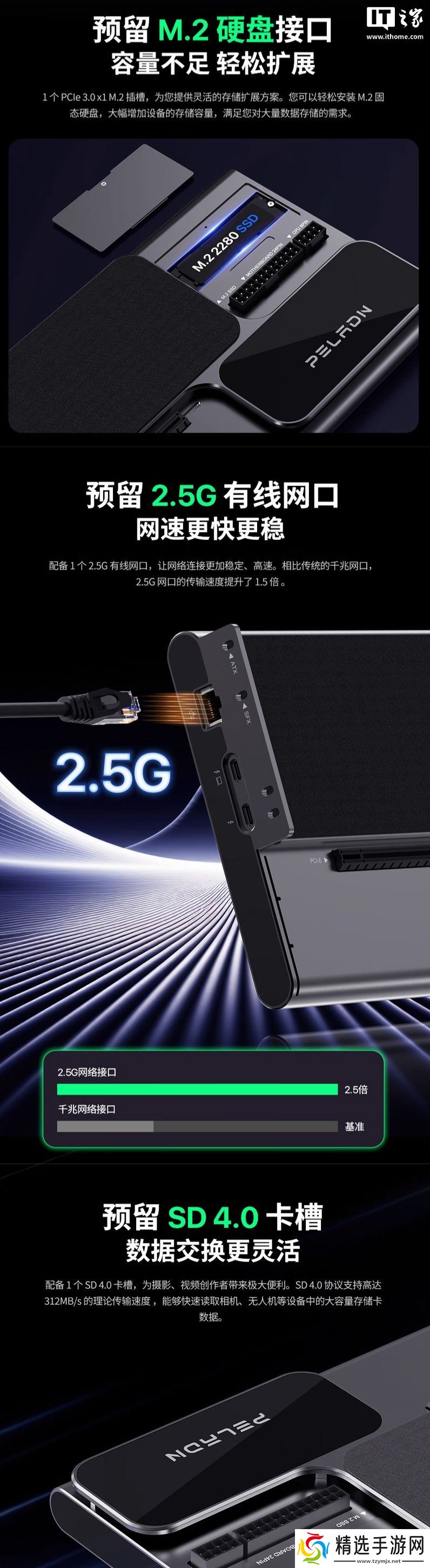在非显卡扩展功能方面,Link S-3 包含了 1 个 2.5GbE RJ45(本站注:基于瑞昱 USB 3.0 有线网卡芯片 RTL8156B)、1 个 USB-A 10Gbps 接口、1 个 SD 4.0 读卡器,此外还提供了 1 个 M.2 2280 PCIe 3.0×1 的存储拓展盘位。