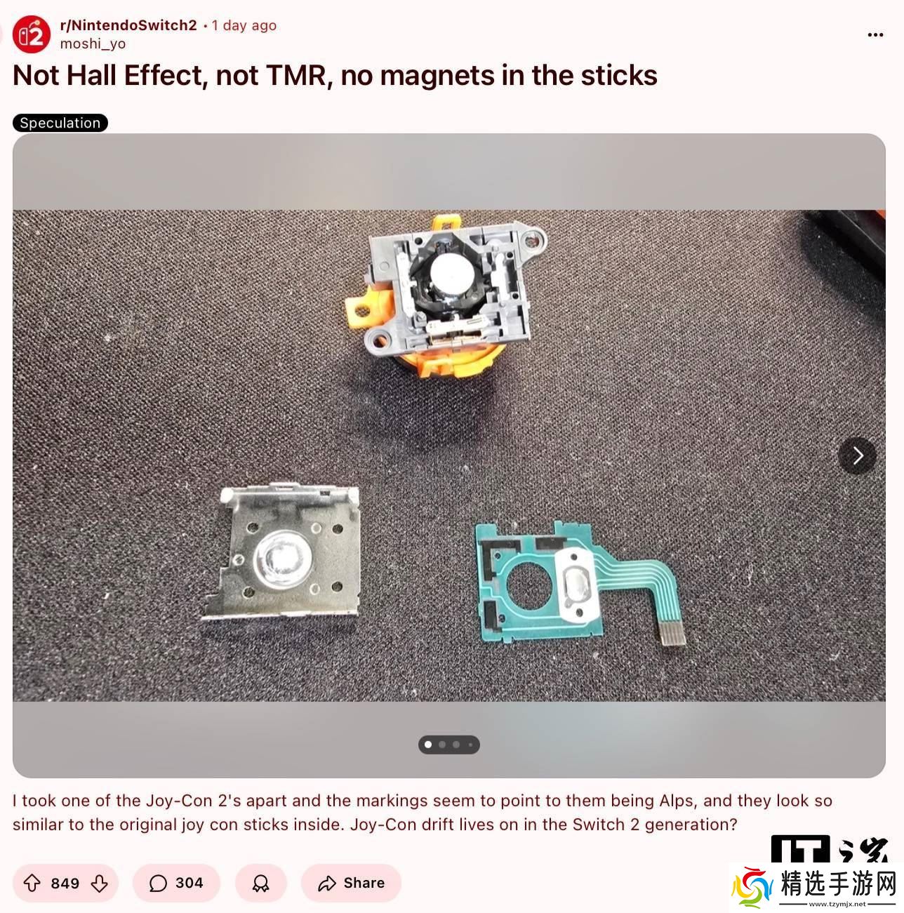 近日,任天堂Switch 2的Joy-Con 2手柄引发了玩家的广泛关注。一位名为moshi_yo的玩家在Reddit上分享了Joy-Con 2手柄的拆解图片,揭示了这款新手柄的内部构造,并指出其并未采用霍尔效应摇杆技术。
