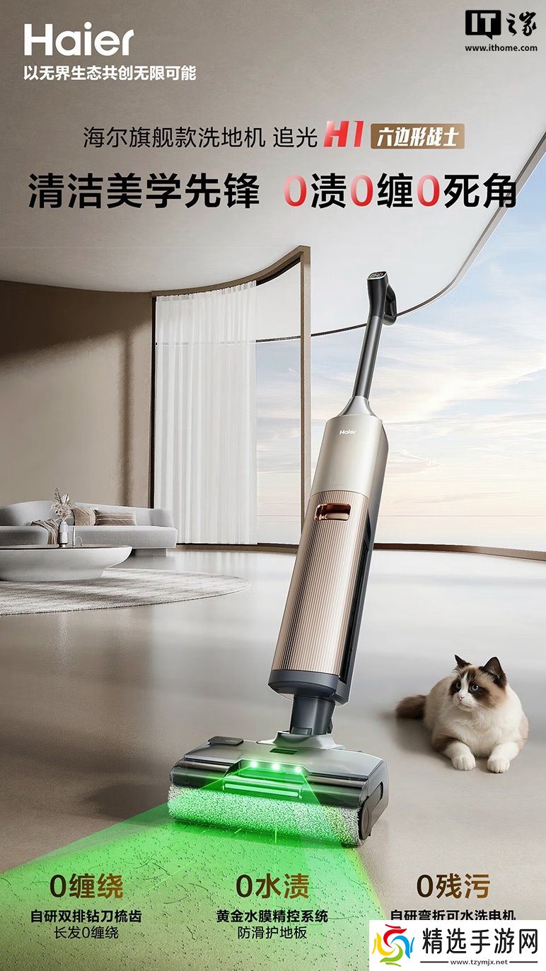 本站 7 月 27 日消息,海尔现已在京东上架一款追光 H1 洗地机,该洗地机主打“20000Pa 吸力、绿光显尘、180 度平躺”,定价为 2099 元。