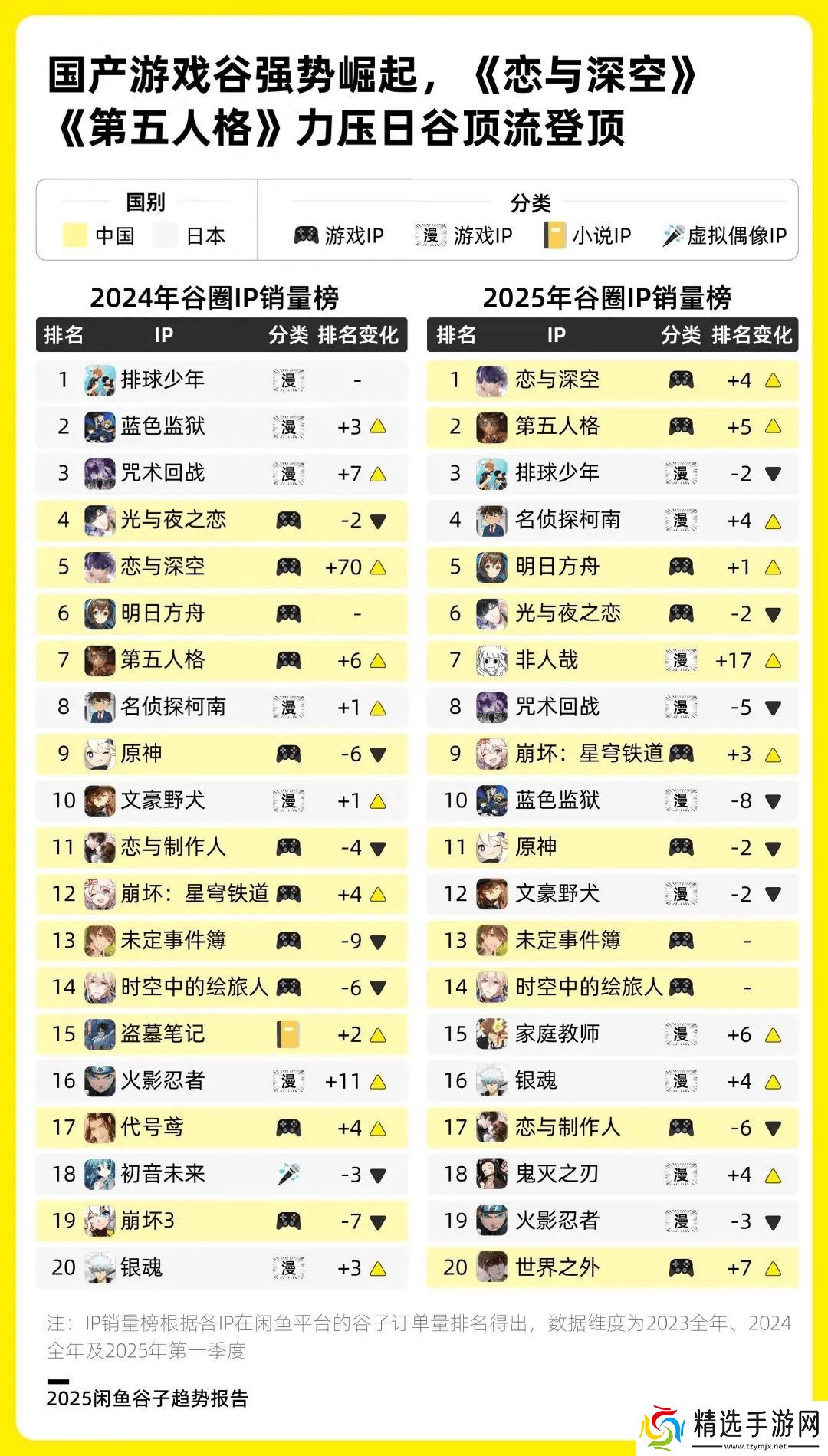 国产游戏谷已超越日漫IP成为市场主导力量。得益于本土游戏厂商对IP运营能力、产品和渠道的把控能力,游戏谷在此次行业调整中展现出更强的抗风险性。以《原神》、《明日方舟》、《偶像梦幻祭》等二游以及几大国产乙游为代表,其游戏公司更倾向于选择业务或资本层面有联系的衍生品方,经销商、零售商介入的空间相对有限,因此不容易出现下游膨胀乱入的情况。
