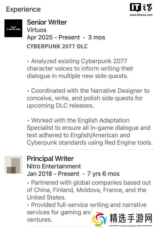 这一推测主要源自Reddit用户Free_Carpenter151的敏锐发现。该用户注意到,外包工作室Virtuos的一位编剧在领英资料上透露,自2025年4月起,他参与了“即将发布”的《赛博朋克 2077》DLC的开发工作,并涉及到“多个新支线任务”的创作。Virtuos此前曾负责过《赛博朋克 2077》2.2版本的更新,这一信息无疑增加了传闻的可信度。