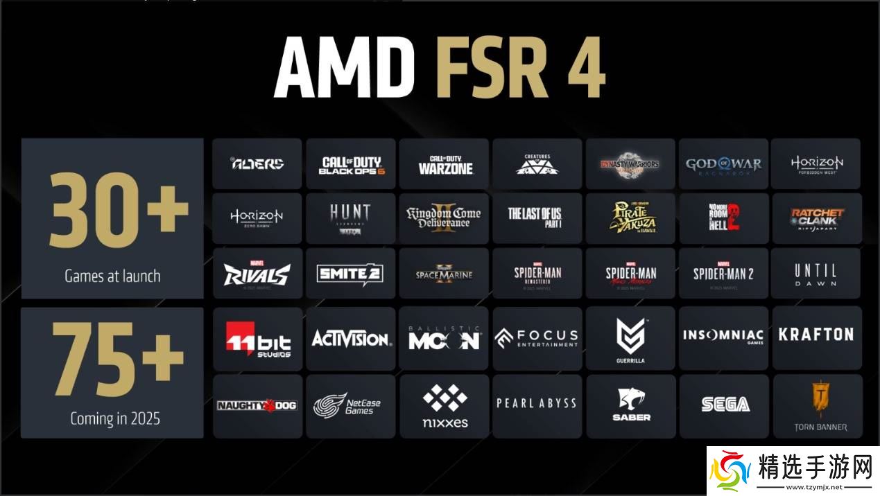 除了硬件升级,AMD还带来了FSR 4技术,这是基于机器学习的超分辨率技术,专为RDNA 4架构设计。FSR 4包含超分辨率、帧生成和防延迟三大功能,能够带来高质量、低延迟的游戏体验。FSR 4还支持最新的神经渲染技术,为玩家提供更细腻的视觉效果。AMD还计划将FSR 4技术扩展到更多游戏中,预计年底前支持的游戏数量将超过75款。