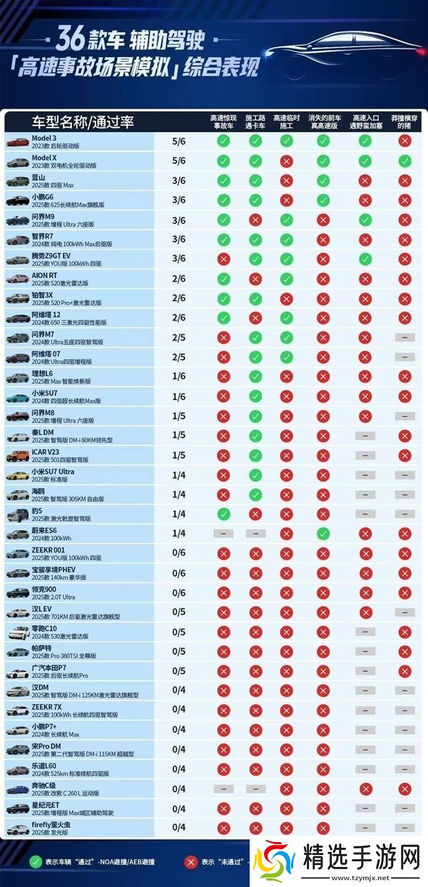 在懂车帝进行的 36 款车辅助驾驶高速事故场景模拟测试中,阿维塔 12 通过了“高速惊现事故车”、“高速临时施工”两个场景,其余 4 个场景测试未通过。