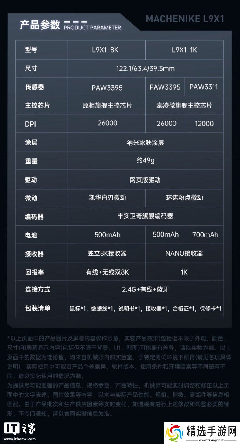 本站 8 月 1 日消息,机械师 L9X1 系列鼠标现已在京东开启首销,该系列鼠标采用 PAR2862 主控,可选 1KHz 回报率及双 8KHz 回报率版本,首发价分别为 139 元 / 229 元,叠加国补后 117.56 元起。