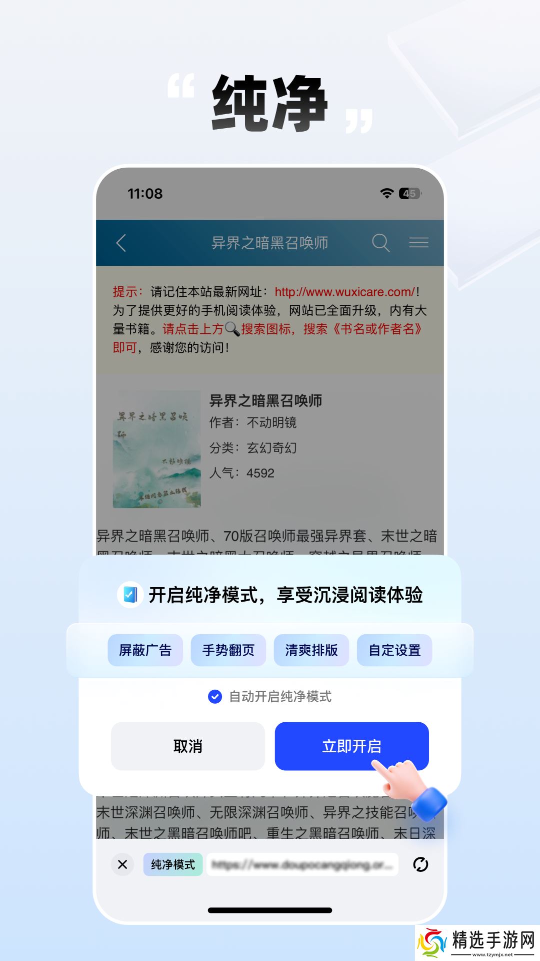 必访小说app下载无广告软件介绍必访小说app拥有海量的小说资源,涵盖了各种题材和类型,无论你是喜欢玄幻奇幻、都市言情,还是历史军事、科幻灵异,都能在这里找到心仪的作品。同时,它还配有分类搜索等多种便捷方式供用户选择,操作起来简单又方便。只需轻轻一点,选择喜欢的小说,就能开启无广告干扰的畅读之旅,用户完全可以放心体验。感兴趣的朋友们别再犹豫,快点来下载试试吧!