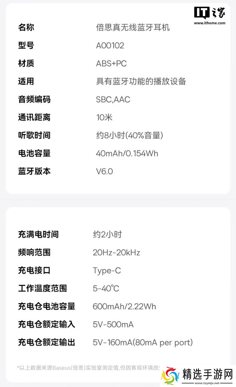 该耳机搭载蓝牙 6.0 技术,单耳续航 8 小时,在搭配充电盒的情况下拥有至高 50 小时续航,同时支持“充电 10 分钟听歌 2 小时”快充,本站附耳机参数如下: