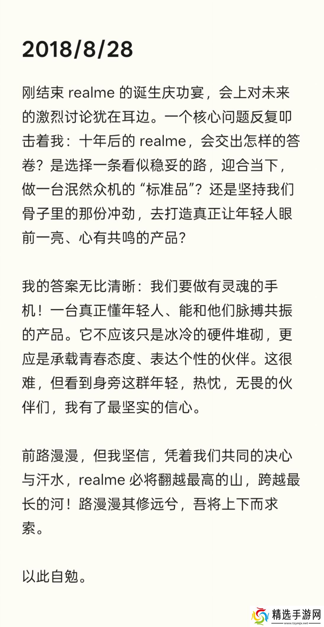 本站 8 月 4 日消息,真我 realme 副总裁、全球营销总裁、中国区总裁徐起今日发文称,回看 realme 刚创立时的豪言壮志,更坚定 realme 就是为年轻人而生,坚定打造真正让年轻人眼前一亮,心有共鸣的产品。