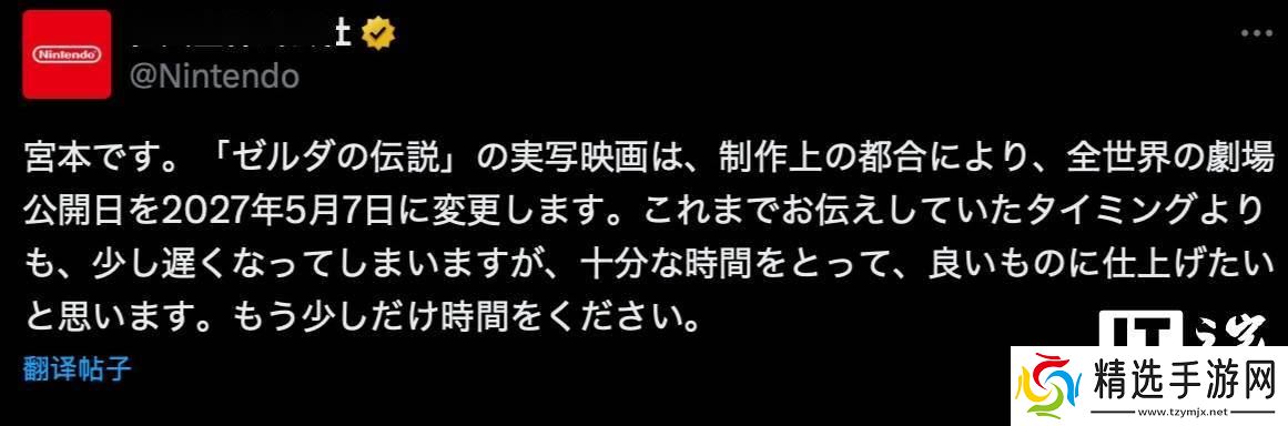 任天堂近日对外公布,《塞尔达传说》真人电影的上映日期已从原先计划的2027年3月26日推迟至2027年5月7日。这一决定源于制作团队希望投入更多时间,以确保影片的高品质呈现。