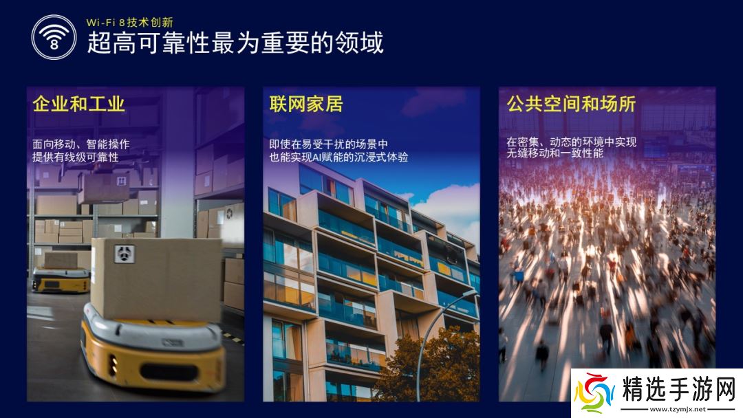 企业连接:赋能智能化、移动化的工作空间:从智能工厂、医院到物流枢纽和企业园区,企业环境正迈入一个移动化、智能化和自动化的新时代。Wi-Fi 8 旨在提供媲美有线基础设施的可靠性和性能,通过创新让协作机器人、工业自动化系统、无人机和自动导引运输车(AGV)等新型的业务关键型用例,即使在移动过程中也能够不间断地运行。这标志着一个根本性的转变。Wi-Fi 不再只是一个提升便利性的附加网络层,而是成为赋能实时决策、自主操作和大规模 AI 驱动工作流的核心基础设施。