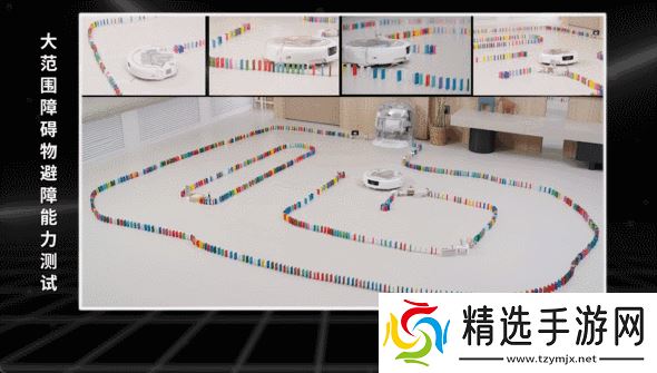 在实际测试中,DJI ROMO P的表现令人印象深刻。我们设置了一个由1000多片多米诺骨牌组成的赛道,只要机器人稍有偏差就会引发连锁反应。然而,DJI ROMO P在整个过程中表现稳定,不仅一次性通过了赛道,而且全程零碰撞,积木零倒塌。相比之下,其他品牌的旗舰机器人则表现逊色,频繁撞到障碍物导致骨牌倒塌。