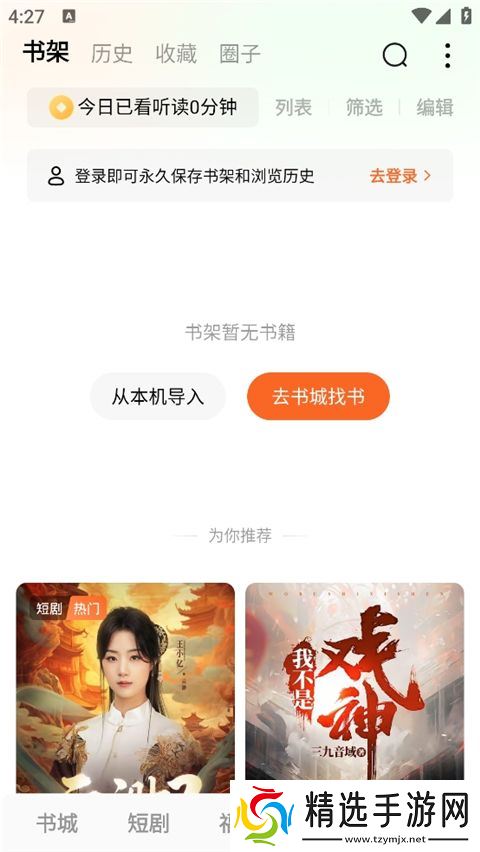 番茄免费小说怎么导入本地小说教程1、下载好软件后安装打开,点击底部导航栏的【书架】按钮。