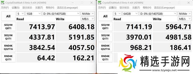 在性能测试中,PC411 2TB SSD展现出了惊人的实力。在CrystalDiskMark测试中,其顺序读取速度达到了7413MB/s,写入速度也有6408MB/s,4K随机读写性能同样不俗。这一成绩不仅证明了其旗舰级的性能,也验证了其在高负载下的稳定表现。