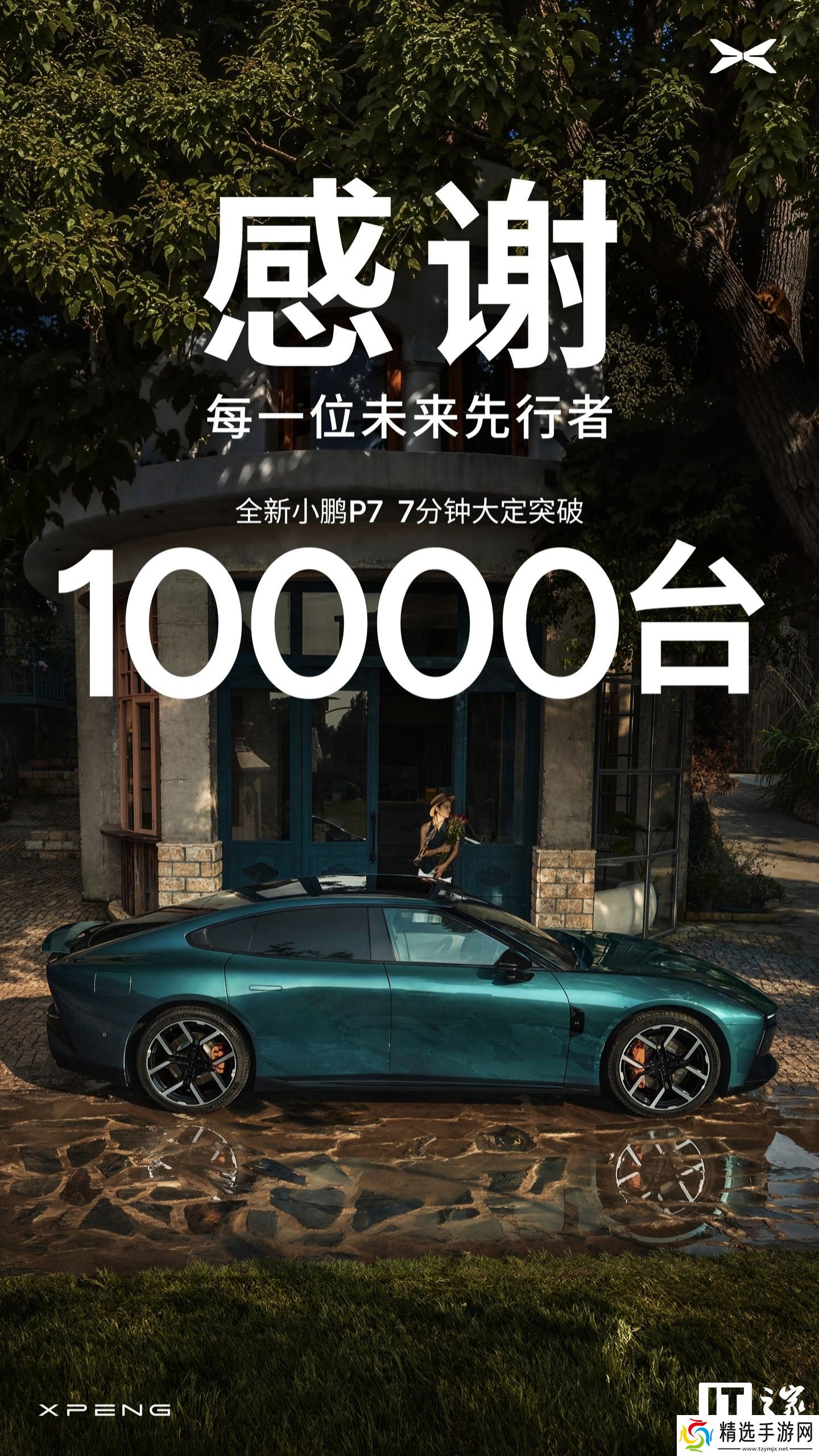 小鹏汽车官方宣布:“全新小鹏 P7,7 分钟,大定突破 10000 台!”