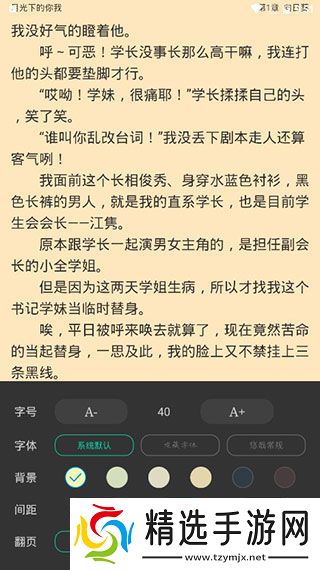4、同时为便于用户阅读,你还可以自己搭配调整选择字体、背景、间距和翻页模式。