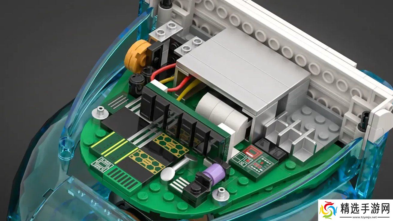 该套装配有经典的“冰球”鼠标和键盘,连接线也采用了标志性的半透明、易泛黄设计,机身内部细节包括阴极射线管显示器和主板构造,比例略小于实物,但在外观与结构上尽量忠实还原原机特点。