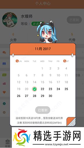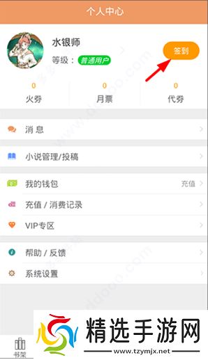 2、每天进行签到之后就能获得5点代券,可以用这个代券来看书。一般来说签到2天可以免费看一章vip,连续签到15天额外赠送10代券,30天赠送30代券。