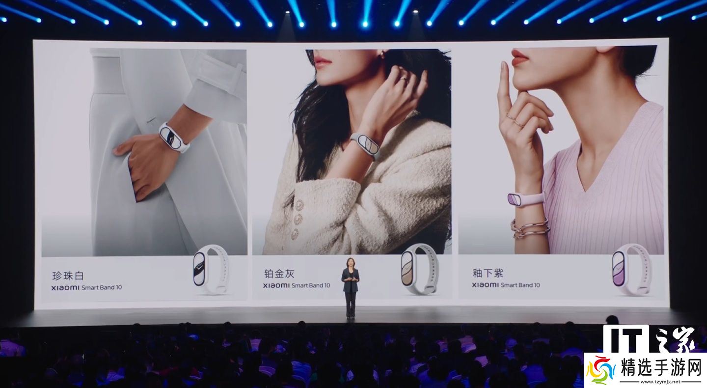 小米手环 10 新增珍珠白、铂金灰、釉下紫陶瓷版本,并提供黑色、银色、粉色、嫩芽绿的金属机身配色。