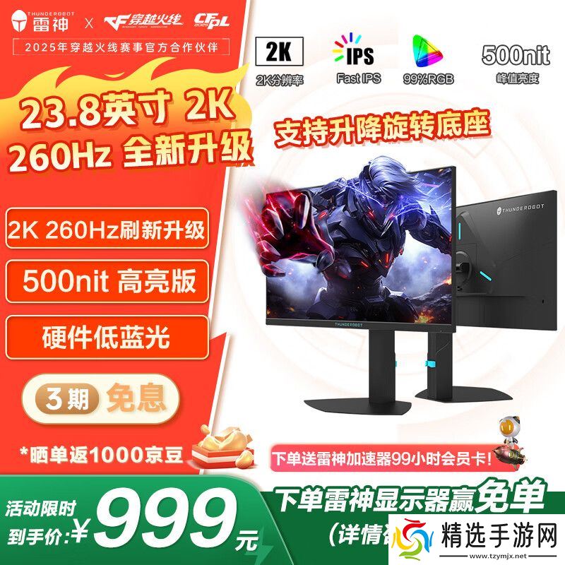 京东雷神黑武士 23.8 英寸 2K260Hz 升级版 JQ24F260L Fast IPS 硬件低蓝光 HDR500nit 高亮游戏电竞升降旋转显示器 999 元直达链接这款显示器采用 Fast IPS 液晶面板(8bit+FRC),支持硬件低蓝光、DC 不闪屏,经过出厂校色,具备 1ms GTG 响应、95% DCI-P3 色域、99% sRGB 色域,ΔE<2,支持 Adaptive-Sync 自适应刷新率。