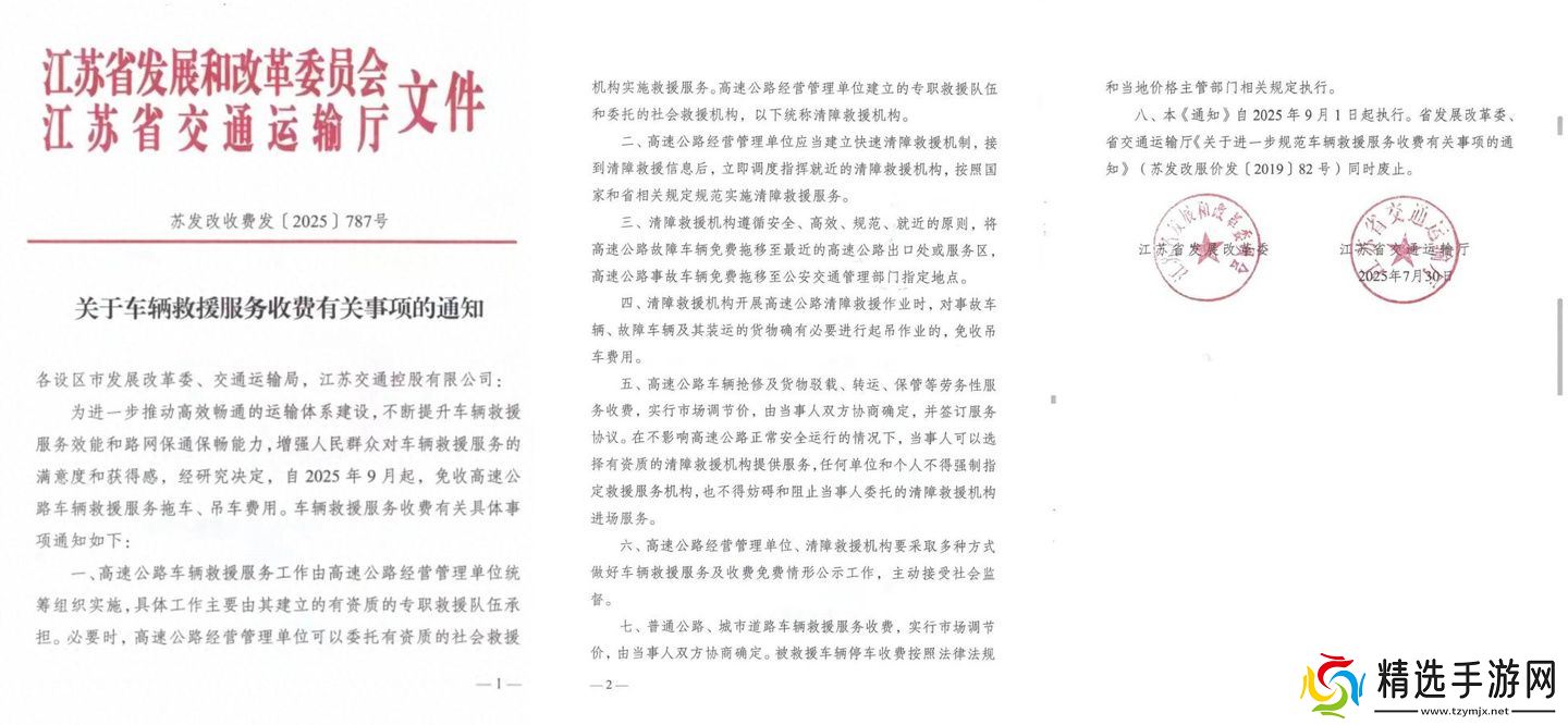 告别“天价施救”:今起江苏省免收高速救援拖车吊车费