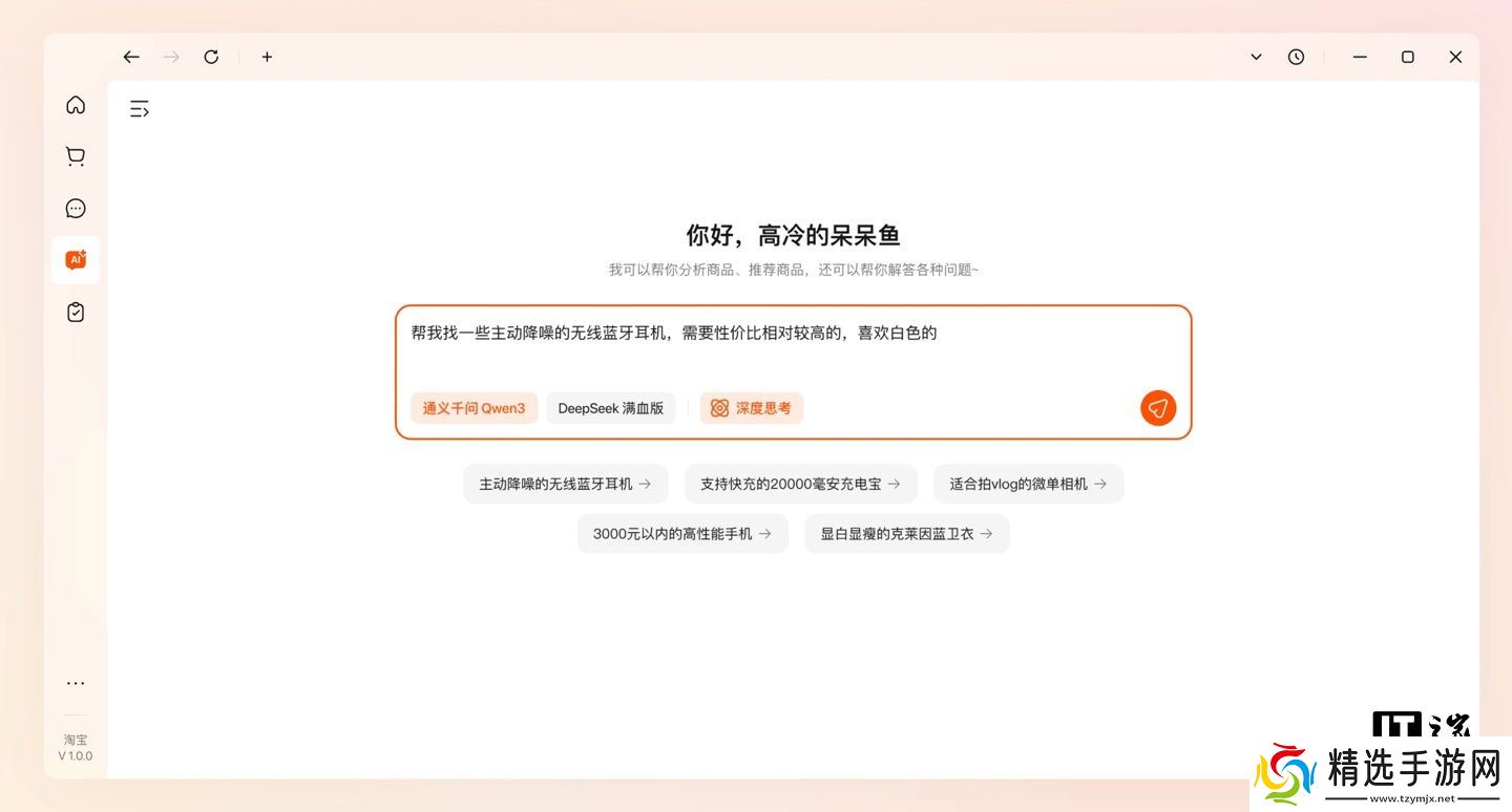 本站发现,淘宝曾在 5 月推出“桌面版”客户端,引入了 AI 导购助手功能,号称整合了 Qwen 3 和 DeepSeek,主要帮助用户挑选商品,官方展示了“3000 元以内的高性能手机”、“支持快充的 20000 毫安时充电宝”等,不过也可以利用其他提示词让 AI 输出各种内容。